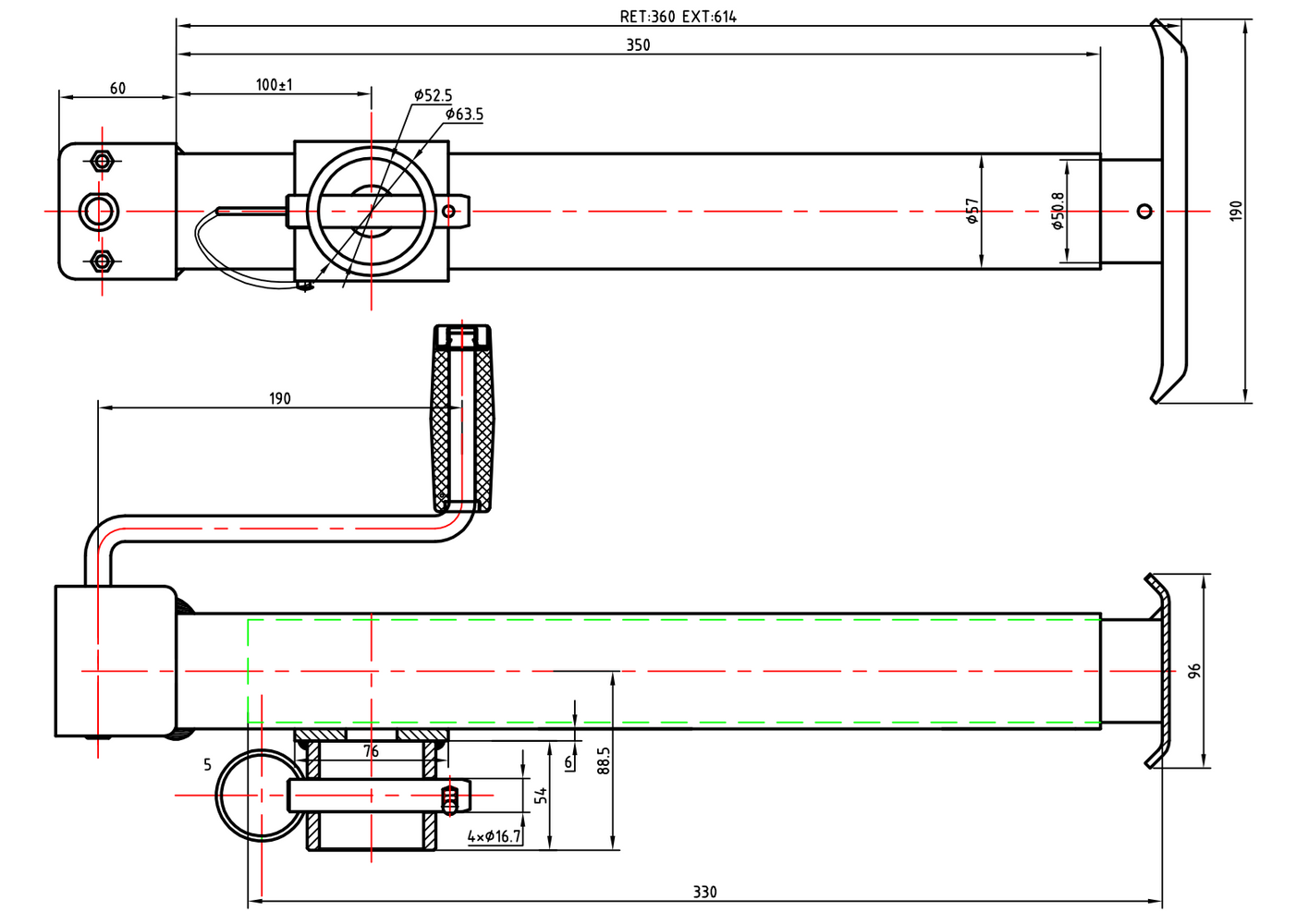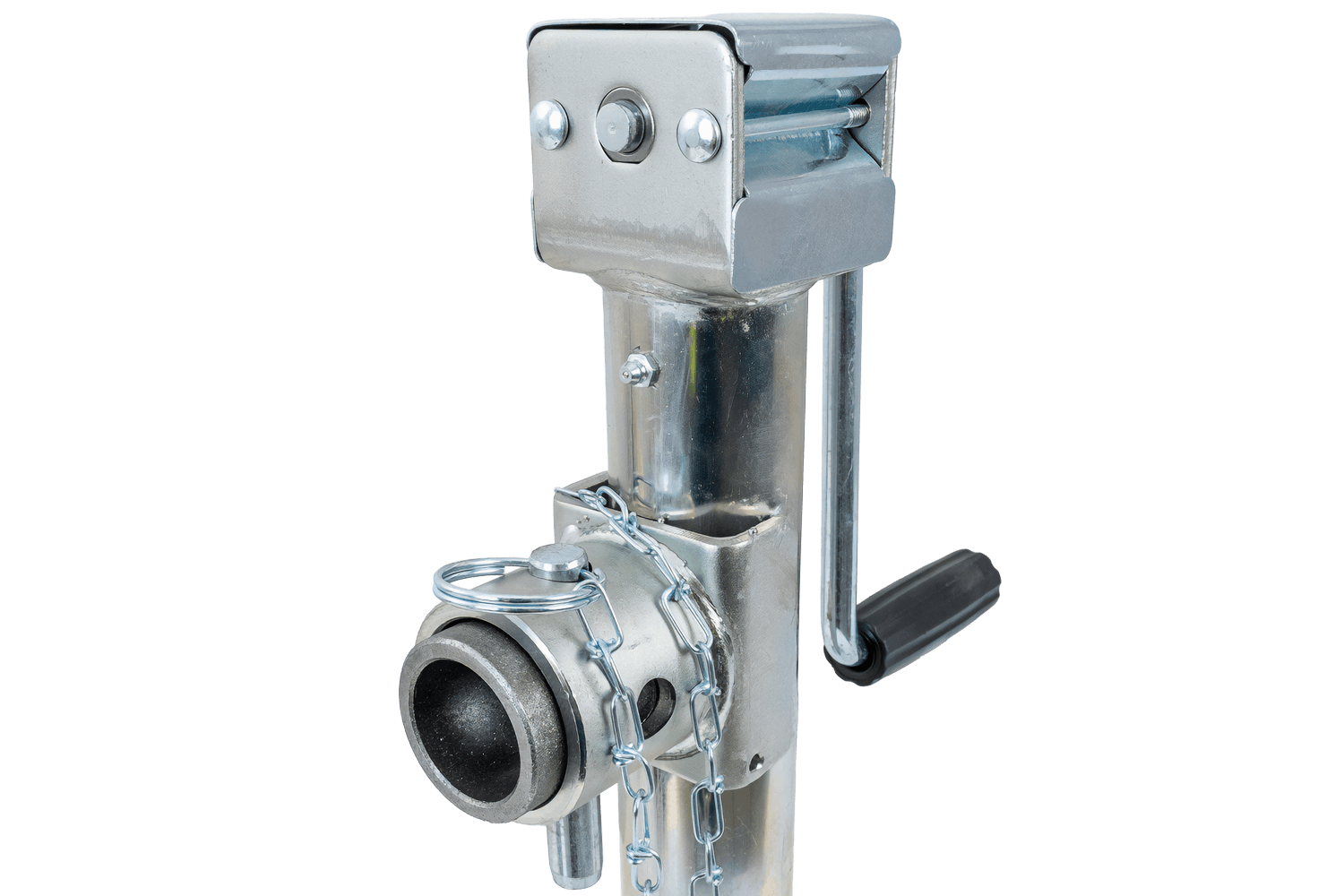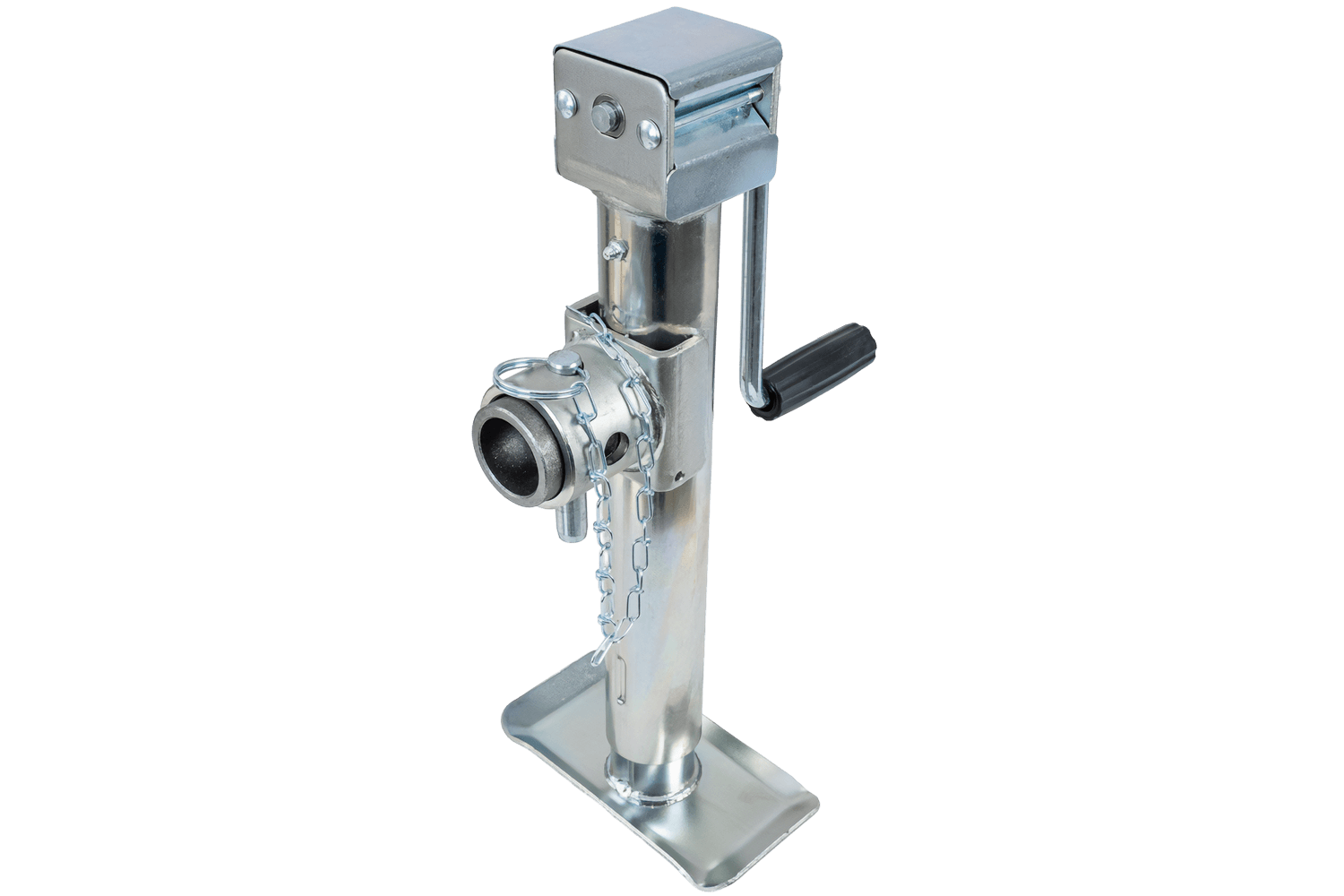 - De TJ5001 krukasondersteuning heeft een maximaal draagvermogen van 1300 kg en is verstelbaar van 360 tot 614 mm, waardoor hij ideaal is voor landbouw-, bouw- en transporttrailers. Hij zorgt voor stabiliteit van het voertuig wanneer het geparkeerd staat en