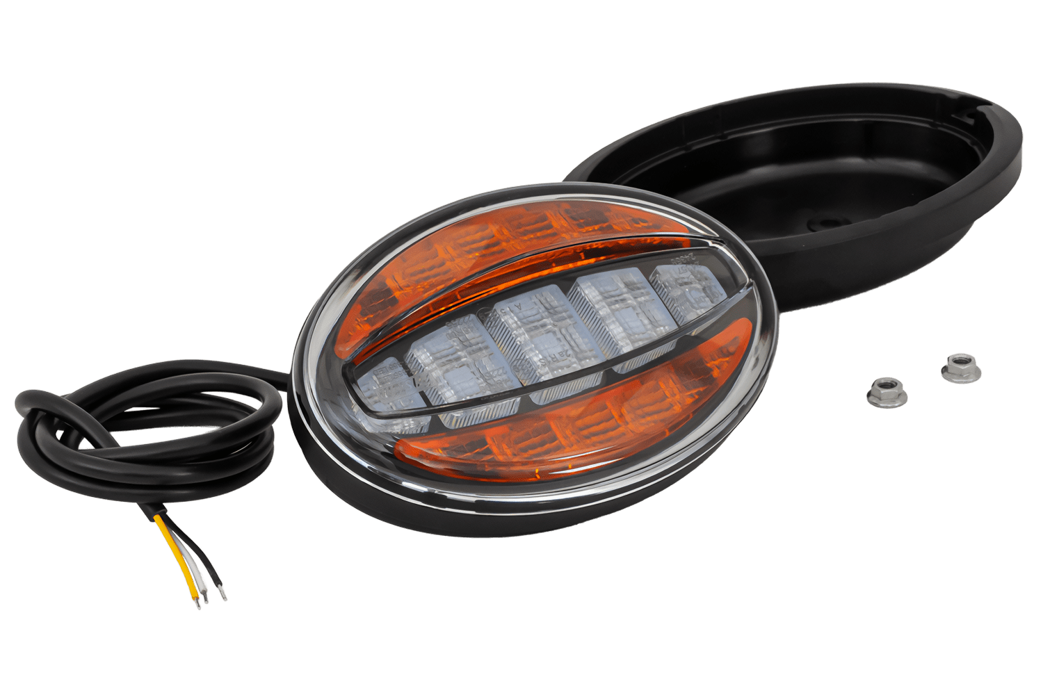 Een set bestaande uit de FT-356 LED voorlicht en de FT-355/356 BACK HOLDER lampbehuizing van FRISTOM, ontworpen Voor montage aan zowel de linker- als de rechterzijde van het voertuig. De behuizing is geschikt voor vlakke montage, wat zorgt voor eenvoudige installatie en duurzaamheid, ongeacht de montagevereisten.