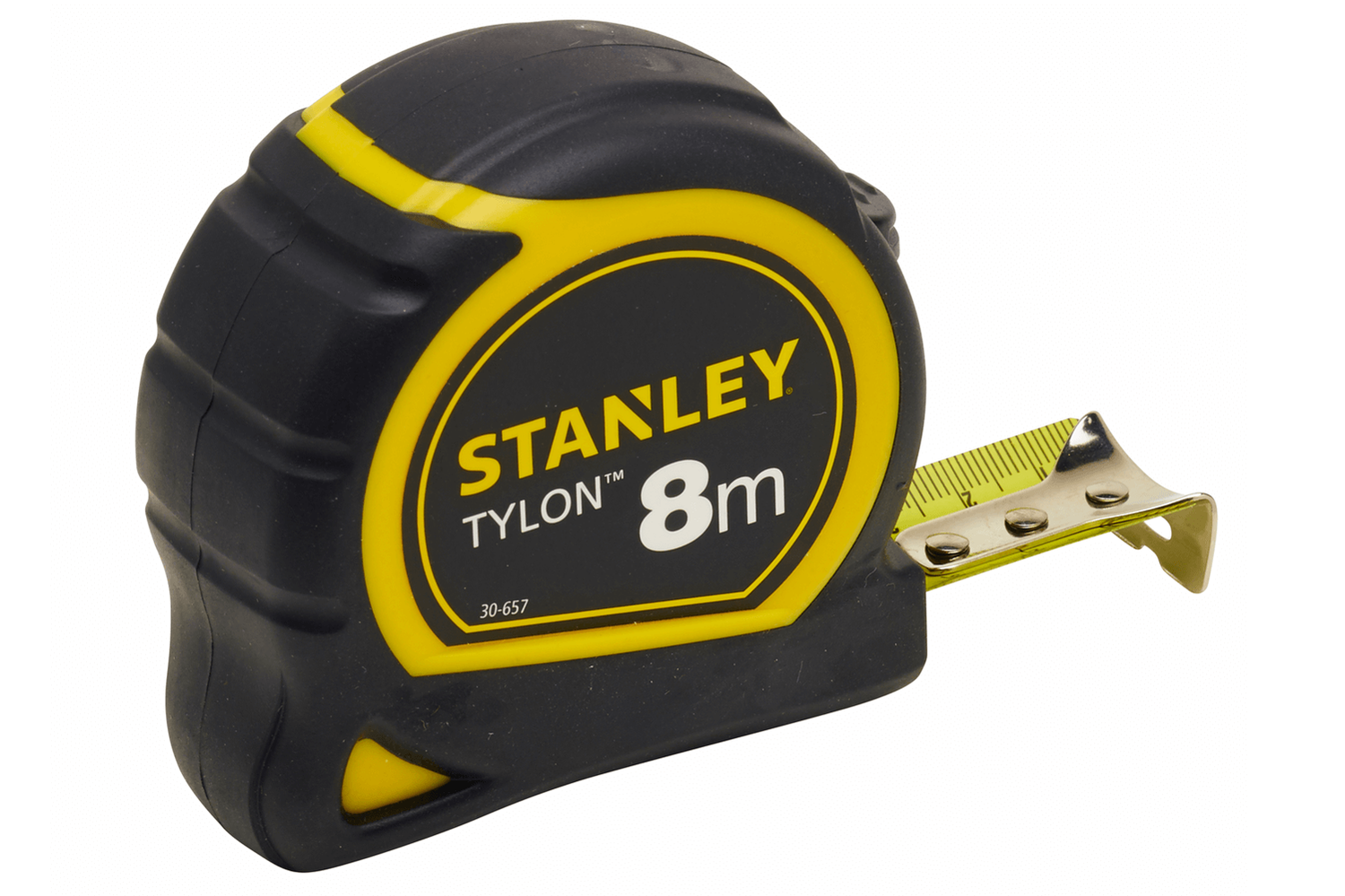 - Professionele STANLEY Tylon rolmaat met beschermlaag, ergonomische behuizing en automatisch oprolmechanisme. Garandeert nauwkeurige metingen, werkcomfort en duurzaamheid. Nauwkeurigheidsklasse II – ideaal voor professionals en doe-het-zelvers.