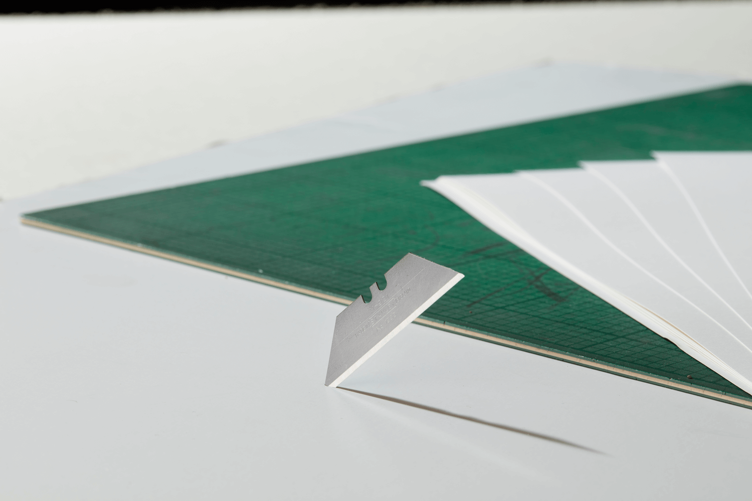 - Set van 100 lange trapeziummessen type 1992, 62 mm lang. Elk lemmet is 19 mm hoog en 0,65 mm dik voor duurzaamheid en snijprecisie. De set is compatibel met de meeste messen van verschillende fabrikanten die trapeziumvormige lemmeten ondersteunen.