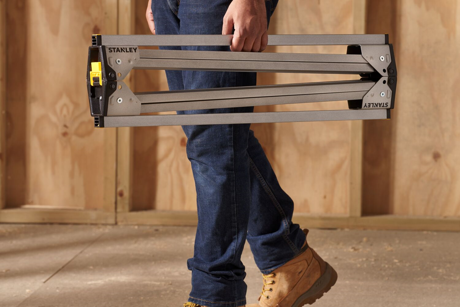 - Een set van twee STANLEY STST81337-1 metalen zaagbok met een draagvermogen van 450 kg biedt stabiele ondersteuning voor zagen en monteren. Dankzij de inklapbare poten, het compacte formaat en mogelijkheid tot vastklikken zijn ze gemakkelijk te vervoeren.