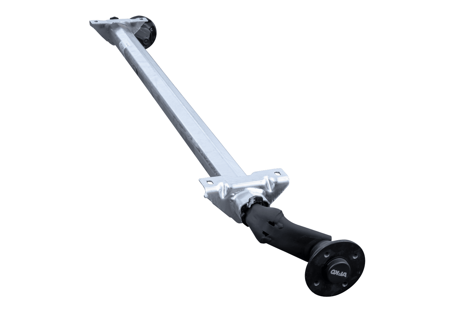 - AL-KO OPTIMA ongeremde as voor een aanhanger met een maximaal laadvermogen van 750 kg. De afstand tussen de bevestigingsgaten bedraagt 1260 mm, de naafafstand bedraagt 1720 mm en het boutpatroon is 4x100. De lengte van de draagarm bedraagt 145 mm.