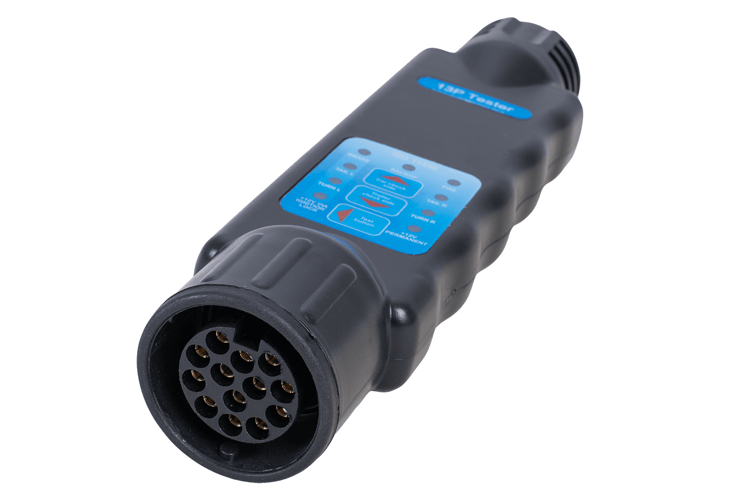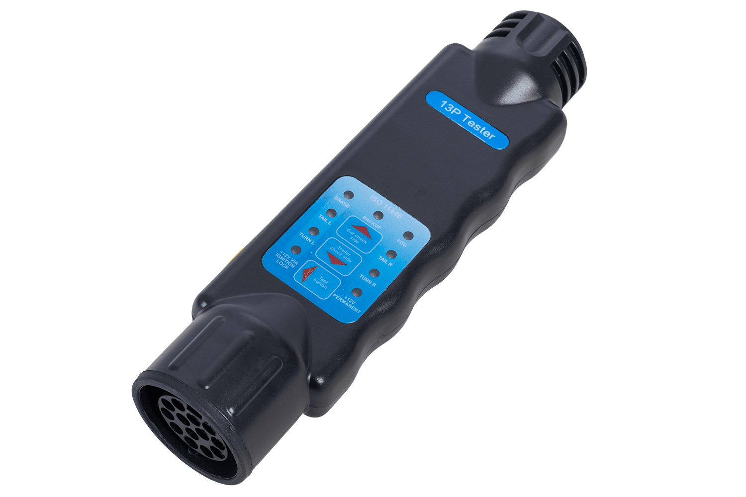 De draadloze 13-polige aanhangwagenstekkertester is een praktisch diagnosehulpmiddel waarmee u snel en nauwkeurig de efficiëntie van de elektrische installatie in een voertuig en aanhangwagen met een standaard 13-polige stekker kunt controleren . Met dit apparaat kunt u de goede werking van de verlichting controleren zonder dat u een tweede persoon nodig hebt. De tester wordt rechtstreeks aangesloten op de aanhangeraansluiting van het voertuig of op de stekker van de aanhanger. Het resultaat wordt weergegeven via LED's die aan de afzonderlijke circuits zijn toegewezen.