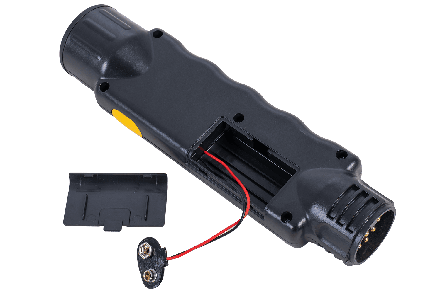 De tester werkt op een 9V-batterij (niet meegeleverd).