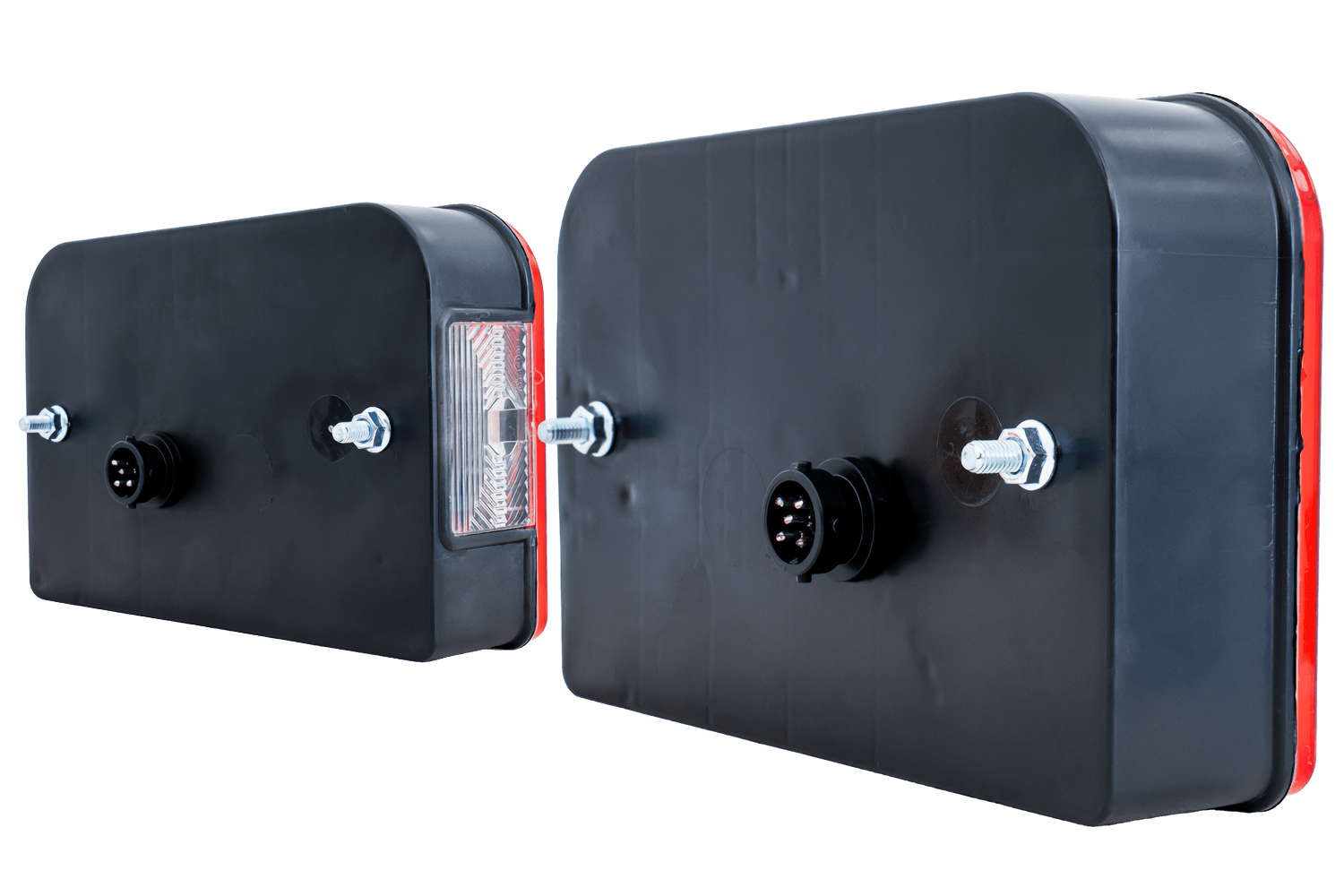 De balk is voorzien van twee 5-pins bajonetconnectoren Voor het aansluiten van achterlichten. Het bajonetsysteem zorgt voor een snelle en veilige installatie, waardoor het risico op onbedoelde loskoppeling tijdens het rijden wordt geëlimineerd. Het connectorontwerp garandeert een waterdichte verbinding en beschermt de contacten tegen corrosie, waardoor een langdurige, probleemloze werking van het gehele verlichtingssysteem van de aanhanger wordt gegarandeerd.