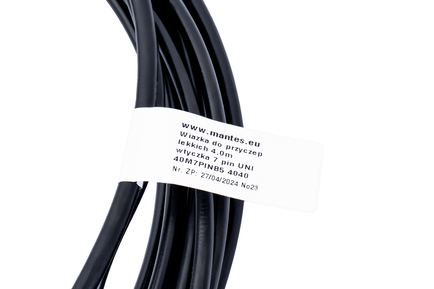 De elektrische installatie van MANTES is een praktische en betrouwbare oplossing voor autotrailers. De 4,1 meter lange, 0,5 mm² hoofdkabel is voorzien van een standaard 7-polige stekker , waardoor hij universeel compatibel is met de meeste voertuigen.