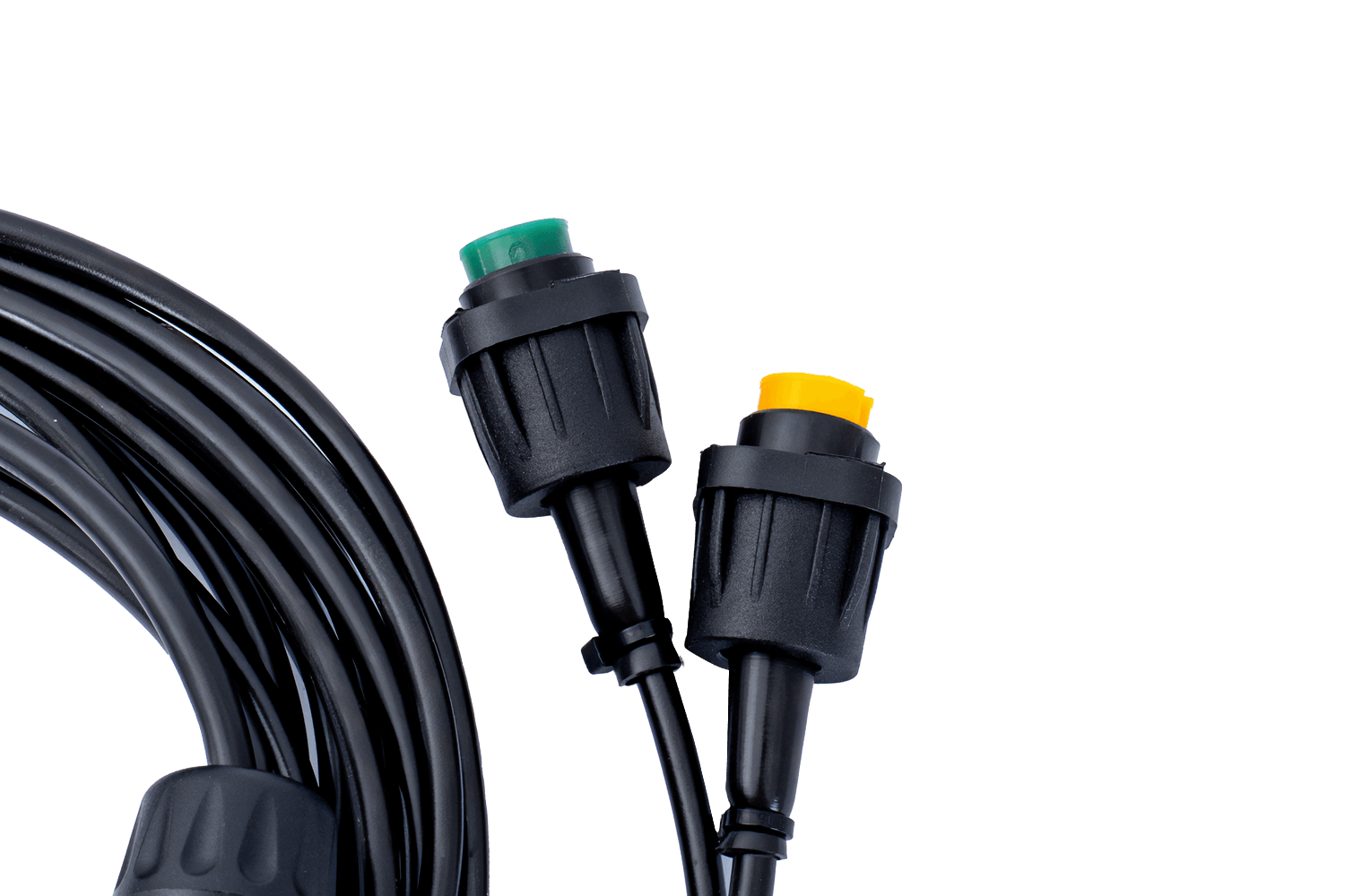 De kabelboom is voorzien van twee 5-polige bajonetaansluitingen voor het aansluiten van de achterlichten. Het bajonetsysteem zorgt voor een snelle en veilige installatie, waardoor het risico op onbedoelde loskoppeling tijdens het rijden wordt voorkomen. Het ontwerp van de connectoren garandeert een waterdichte verbinding en beschermt de contacten tegen corrosie. Dit garandeert een langdurige, storingsvrije werking van de volledige trailerverlichtingsinstallatie.