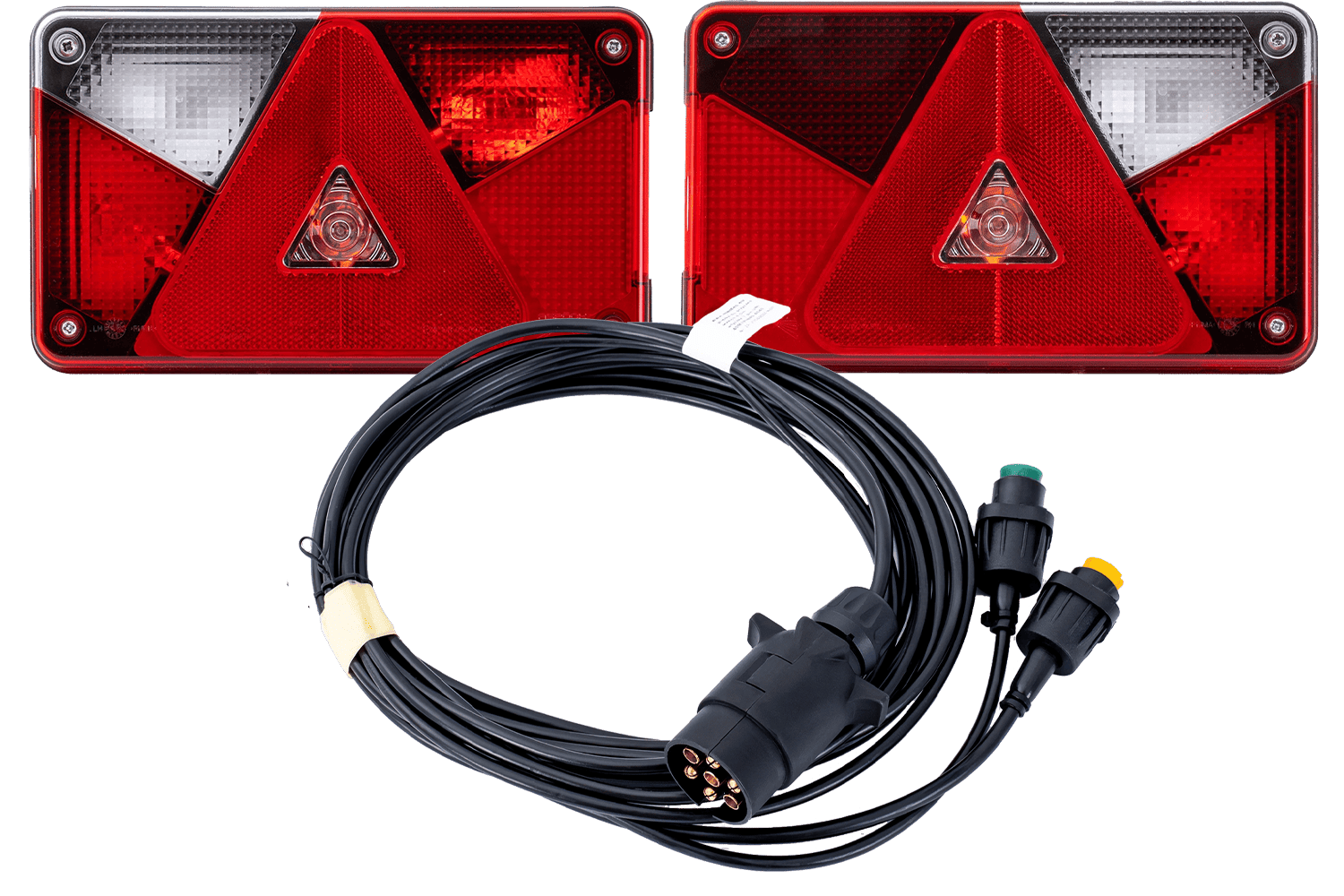 De verlichtingsset is een elektrische oplossing die volledige en conforme verlichting biedt voor opleggers, aanhangwagens en andere transportvoertuigen , waardoor hun zichtbaarheid en veiligheid op de weg wordt vergroot. Het bestaat uit achterlichten en een elektrisch harnas. Dankzij hoogwaardige componenten garandeert het een betrouwbare werking, goed zicht en naleving van de geldende veiligheidsnormen. Het is de perfecte keuze voor wie op zoek is naar een duurzaam en effectief voertuigverlichtingssysteem.
