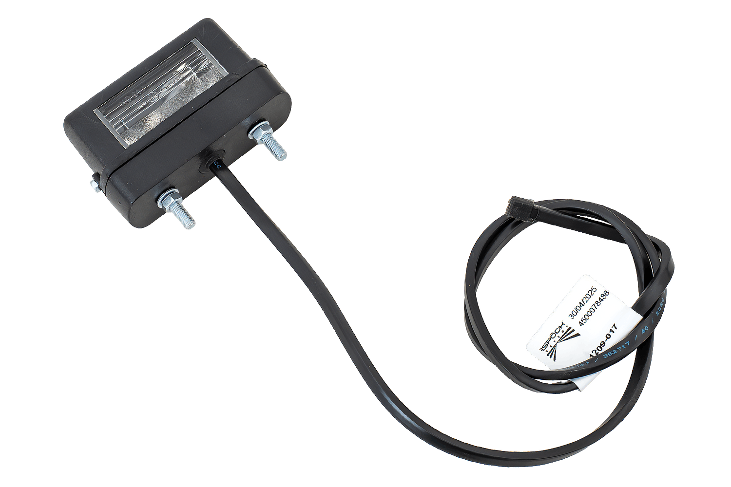 Nieuwe, originele kentekenplaatverlichting voor aanhangers. Fabrikant: Aspöck. De lamp heeft de 0,8 m draad.