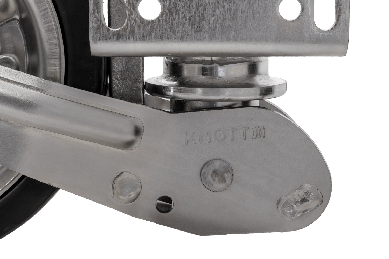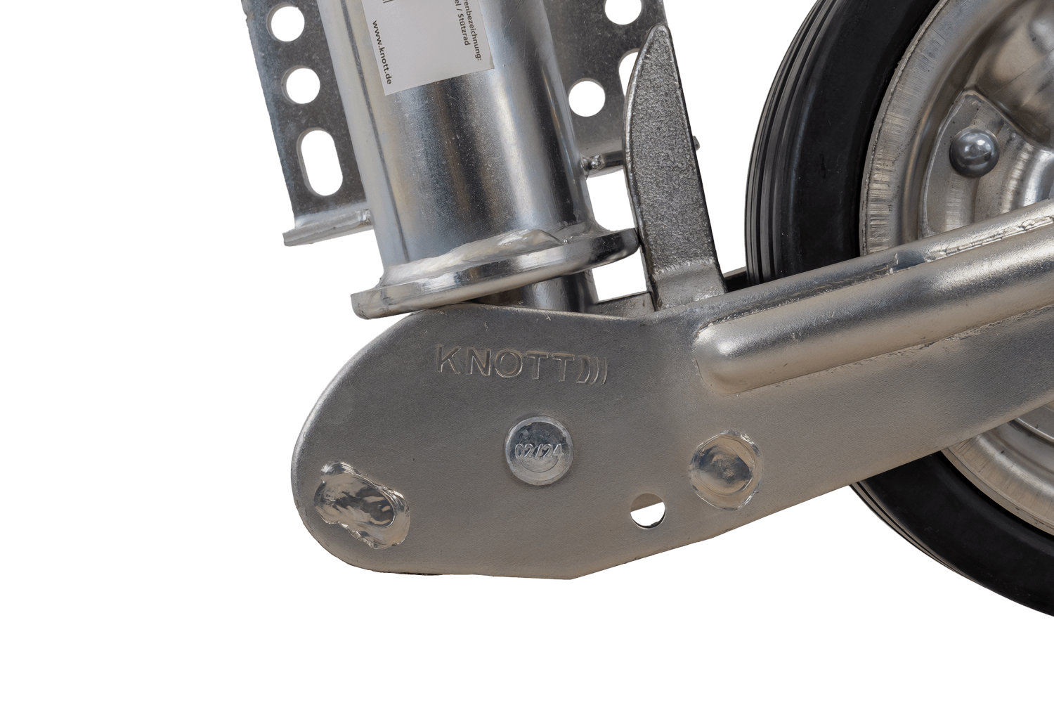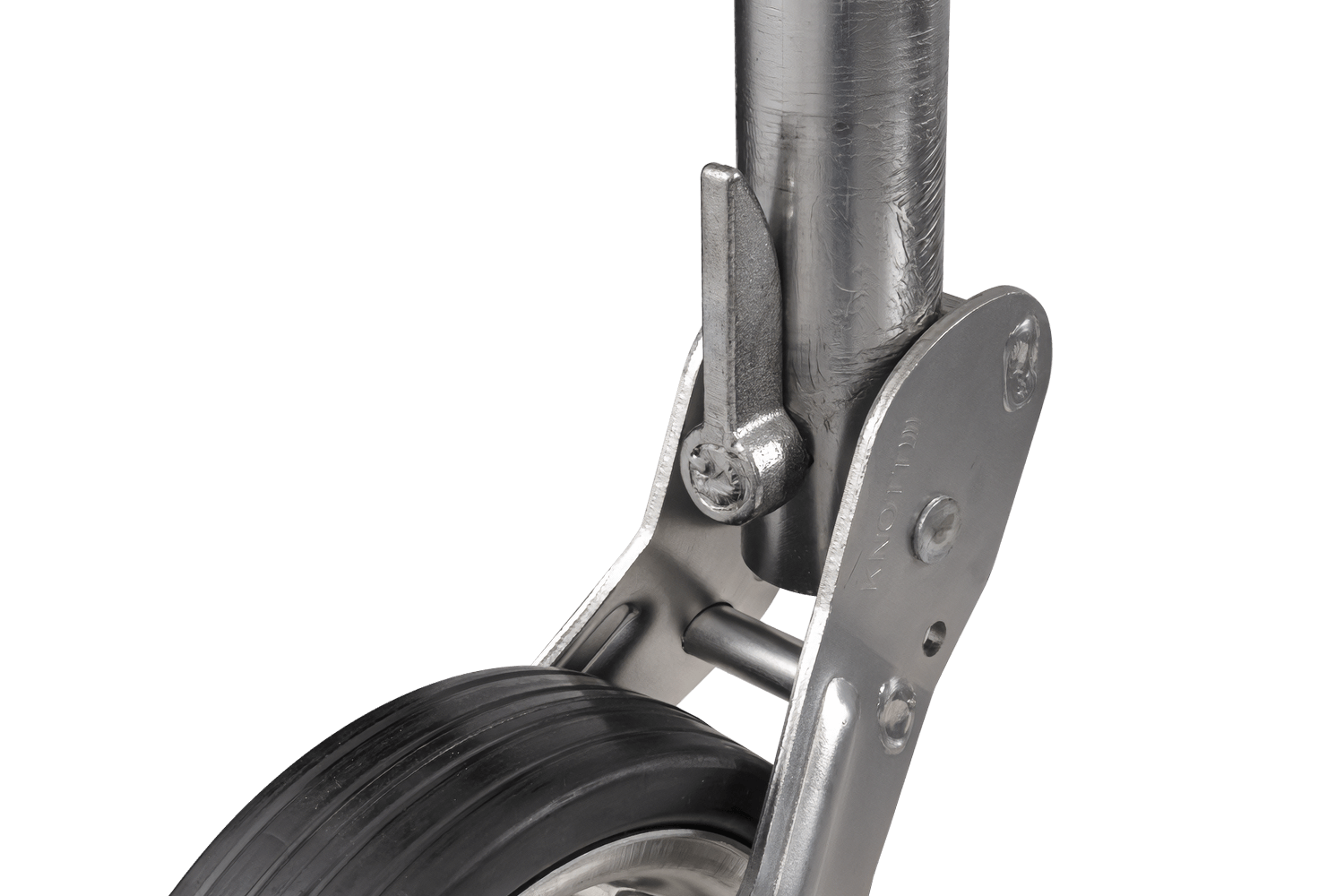 • Het ATK60 KNOTT neuswiel met een draagvermogen van 350 kg stabiliseert de dissel van de aanhanger bij stilstand en vergemakkelijkt het manoeuvreren. Dankzij de solide constructie en eenvoudige montage is het geschikt voor aanhangers van groter gewicht.