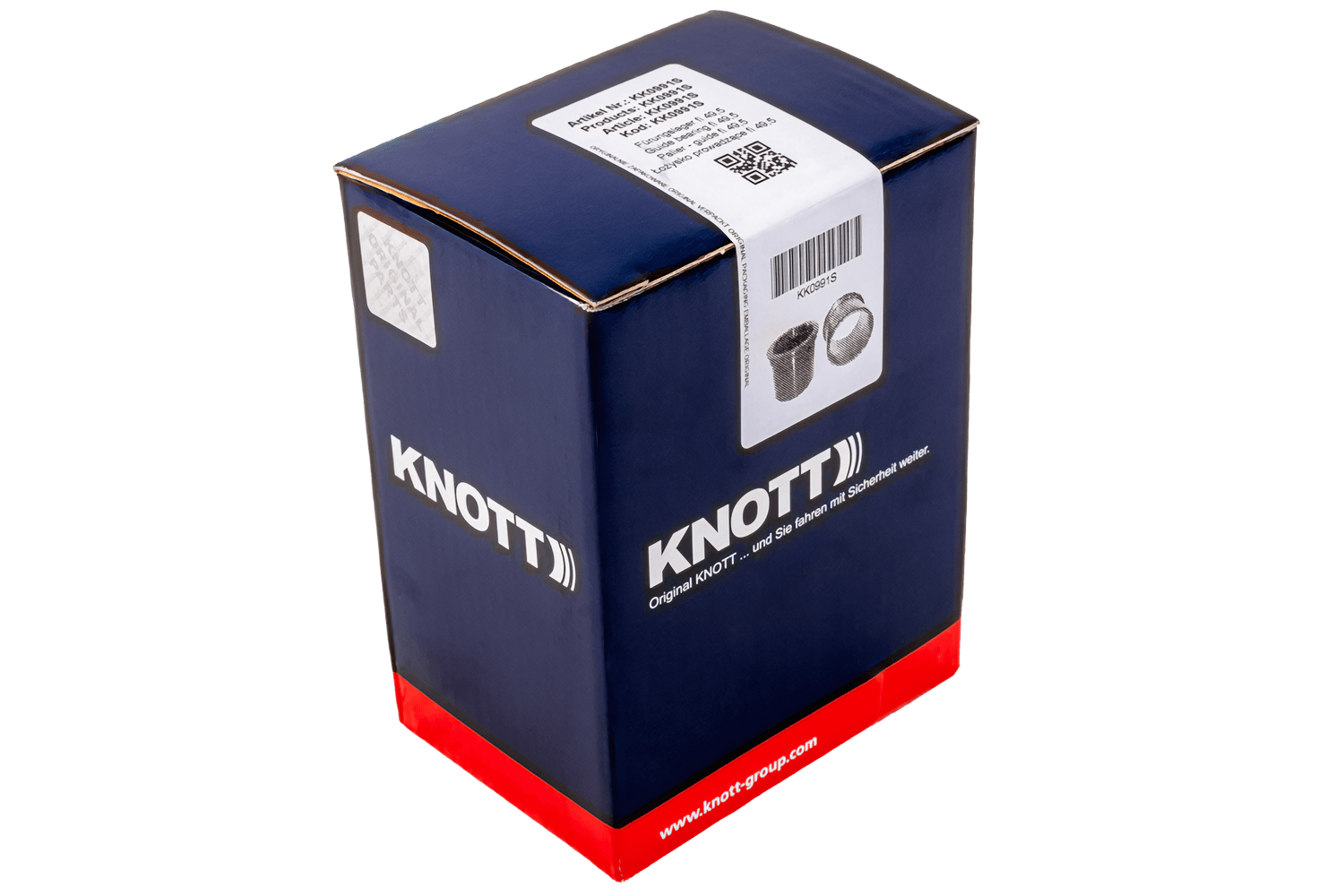 De KNOTT KK0991S glijbussen zijn een originele set geleidingslagers, ontworpen voor oploopremmen van het type KF27 met een toegestane belasting van 2000 tot 2700 kg. Elke bus heeft een binnendiameter van 49,5 mm , waardoor een nauwkeurige pasvorm op de schuif van het oprijmechanisme wordt gegarandeerd. De set bestaat uit twee bussen die aan het begin en het einde van de behuizing van de behuizing worden gemonteerd. Hierdoor wordt een stabiele geleiding van de schuif gegarandeerd en wordt slijtage van de mechanische elementen tot een minimum beperkt .