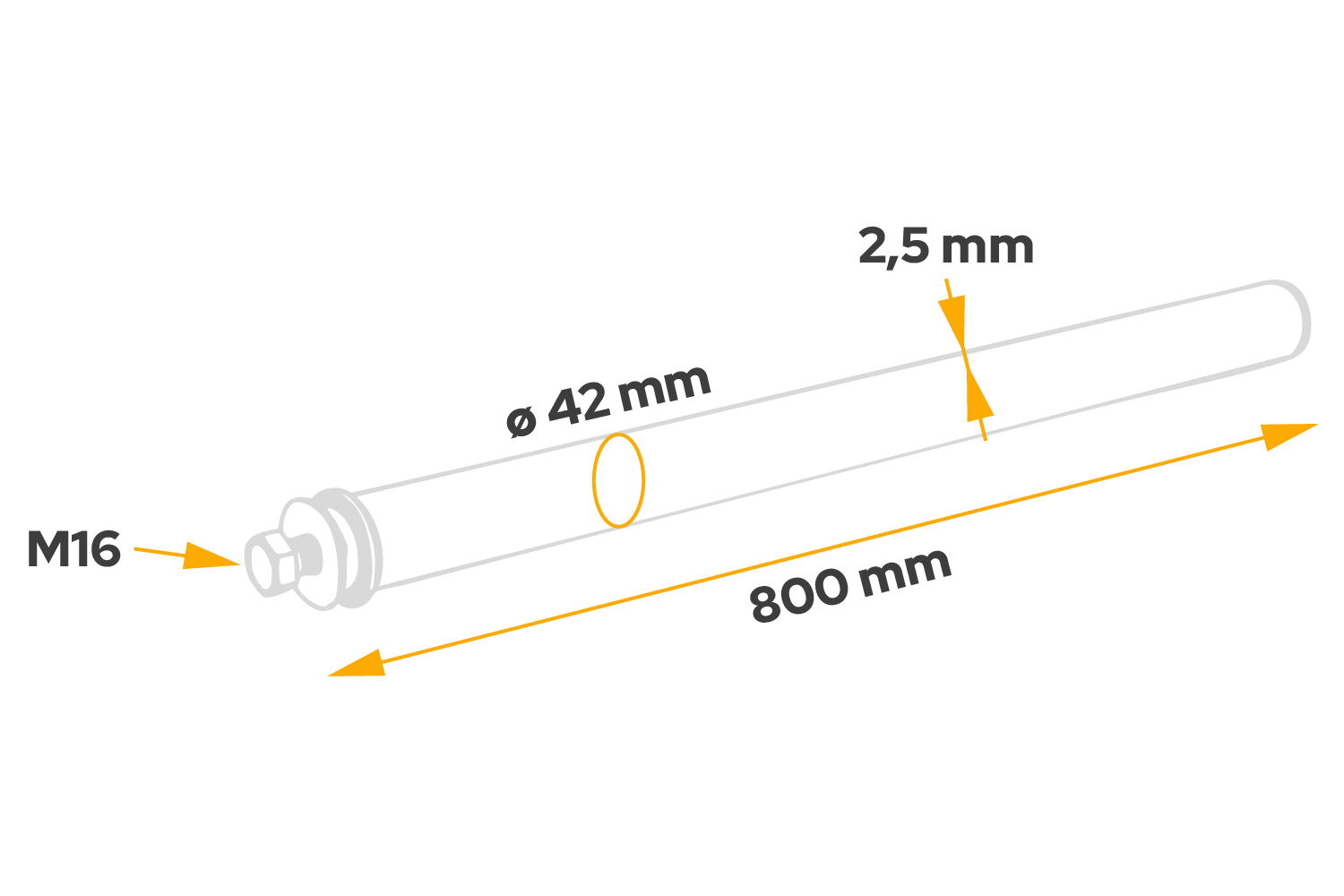 De rechte buis DK8022 van DOMAR is een robuust montage-element van staal, zwart gepoedercoat, wat de weerstand tegen corrosie en zware bedrijfsomstandigheden vergroot. De buis heeft een diameter van 42 mm , een lengte van 800 mm en een M16 buitendraad , waardoor snelle en veilige montage met andere bevestigingsmiddelen, zoals klemmen of beugels, mogelijk is.
