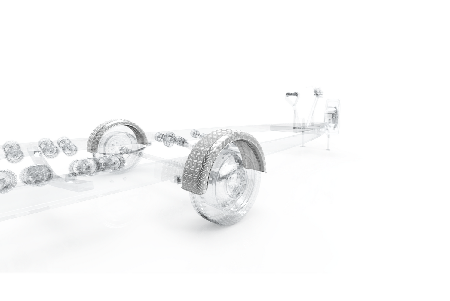 De spatborden zijn gemaakt van hoogwaardig gegolfd plaatstaal , dat zeer goed bestand is tegen mechanische beschadigingen, weersomstandigheden zoals regen, vorst of uv-straling, en corrosie. Bovendien geeft het gebruik van gegolfd aluminium de spatborden een moderne uitstraling en garandeert het duurzaamheid onder intensieve bedrijfsomstandigheden .