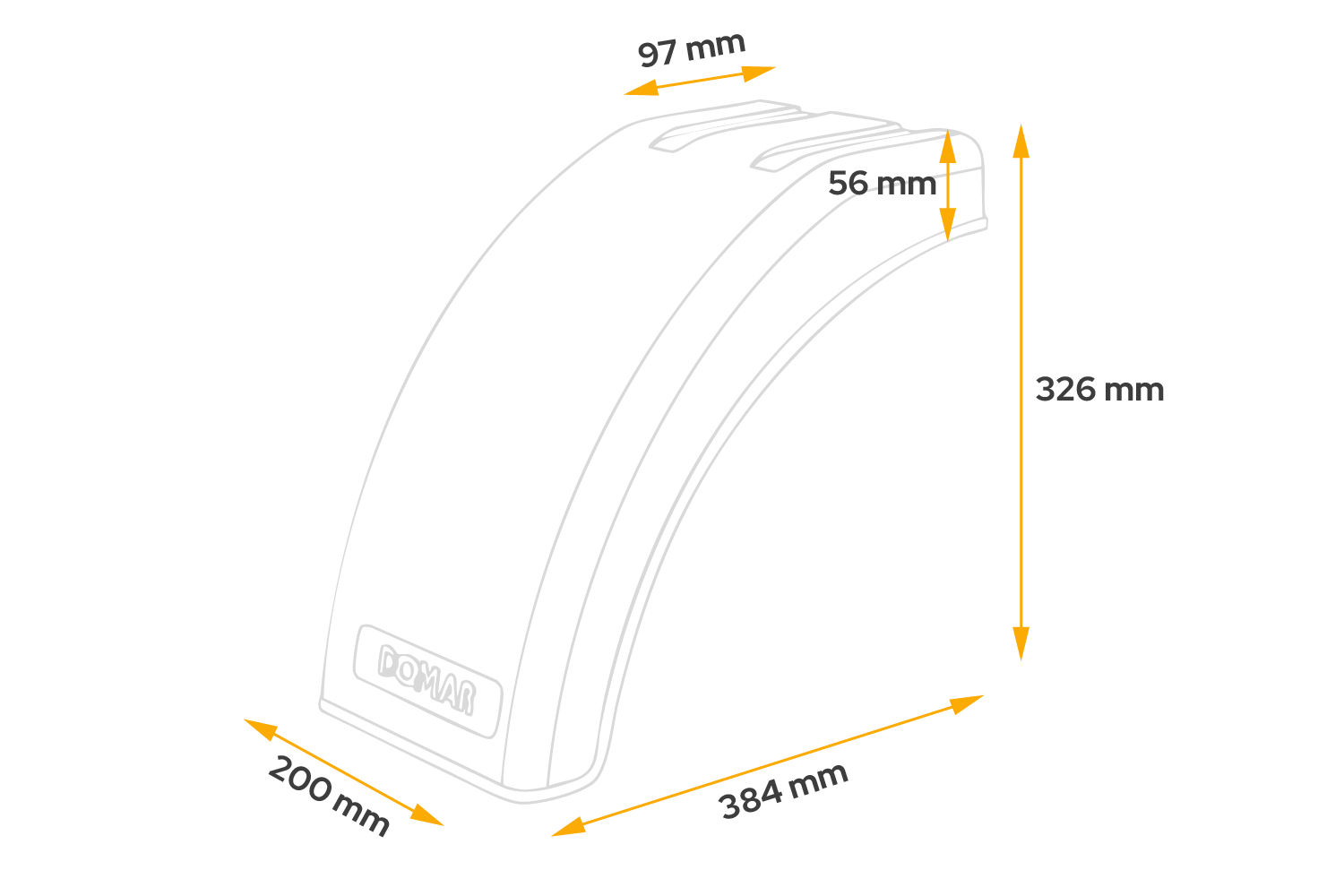 • Het DOMAR DR1012202 linker spatbord is 384 mm lang en 200 mm breed. Het beschermt de aanhanger en lading tegen mechanische schade en andere weggebruikers tegen modder en steenslag.