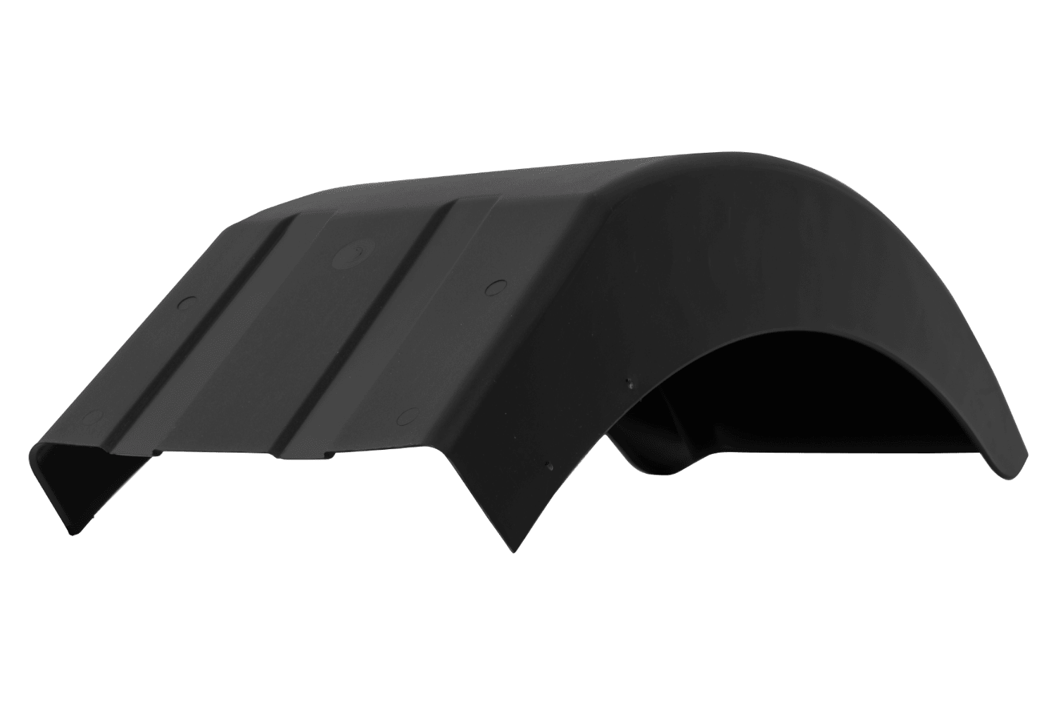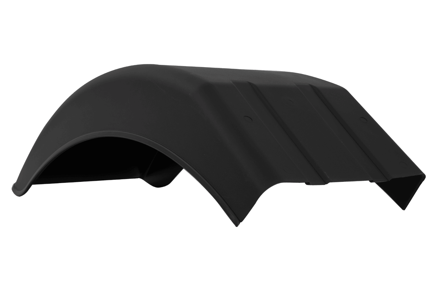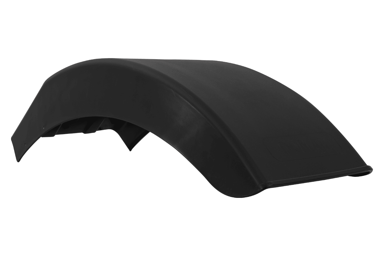De D1013004 rechter halve spatbord van DOMAR wordt aan de rechterkant van het voertuig gemonteerd (gezien in de rijrichting). Dit compacte en duurzame halve spatbord is ontworpen om de wielen van aanhangwagens, lichte landbouw- of bouwmachines en andere bedrijfsvoertuigen te beschermen. Met afmetingen van 395 mm lang, 220 mm breed en 360 mm hoog is het perfect voor gebieden die effectieve bescherming tegen water, modder en steenslag vereisen, en tegelijkertijd ruimte besparen. Het heeft geen fabrieksmatige bevestigingsgaten , waardoor de gebruiker de bevestigingspunten vrij kan aanpassen aan het specifieke voertuigontwerp. De vlakke onderkant, met extra reliëf dat het spatbord verstevigt, maakt eenvoudige bevestiging direct op het chassis mogelijk, voor een snelle en gemakkelijke installatie.
