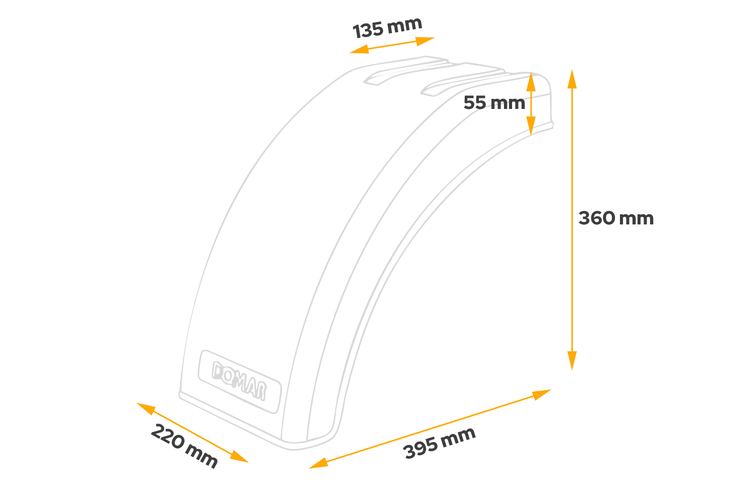 - Het D1013004 DOMAR rechterspatbord is 395 mm lang en 220 mm breed. Het beschermt de aanhanger en lading tegen mechanische schade en andere weggebruikers tegen modder en steenslag.