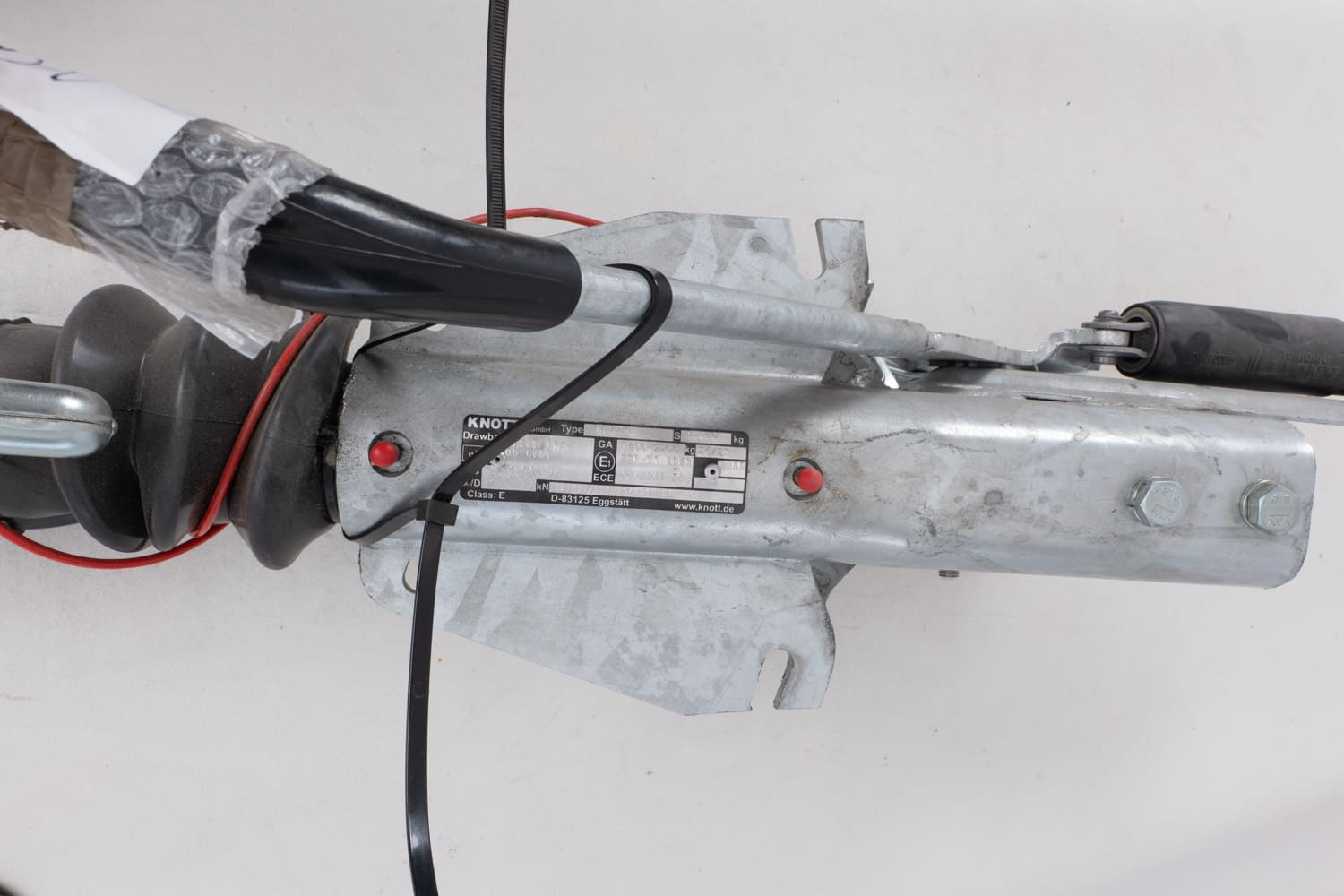 De gemonteerde KNOTT K27-A kogelkoppeling , gemaakt van duurzaam gietijzer, zorgt voor een solide en veilige verbinding met het trekkende voertuig, evenals maximale duurzaamheid en belastingsweerstand. De koppeling is uitgerust met een slijtage-indicator die aangeeft wanneer onderdelen vervangen moeten worden, zodat gebruikers continu de technische staat kunnen controleren en de geschiktheid voor verder gebruik kunnen beoordelen.