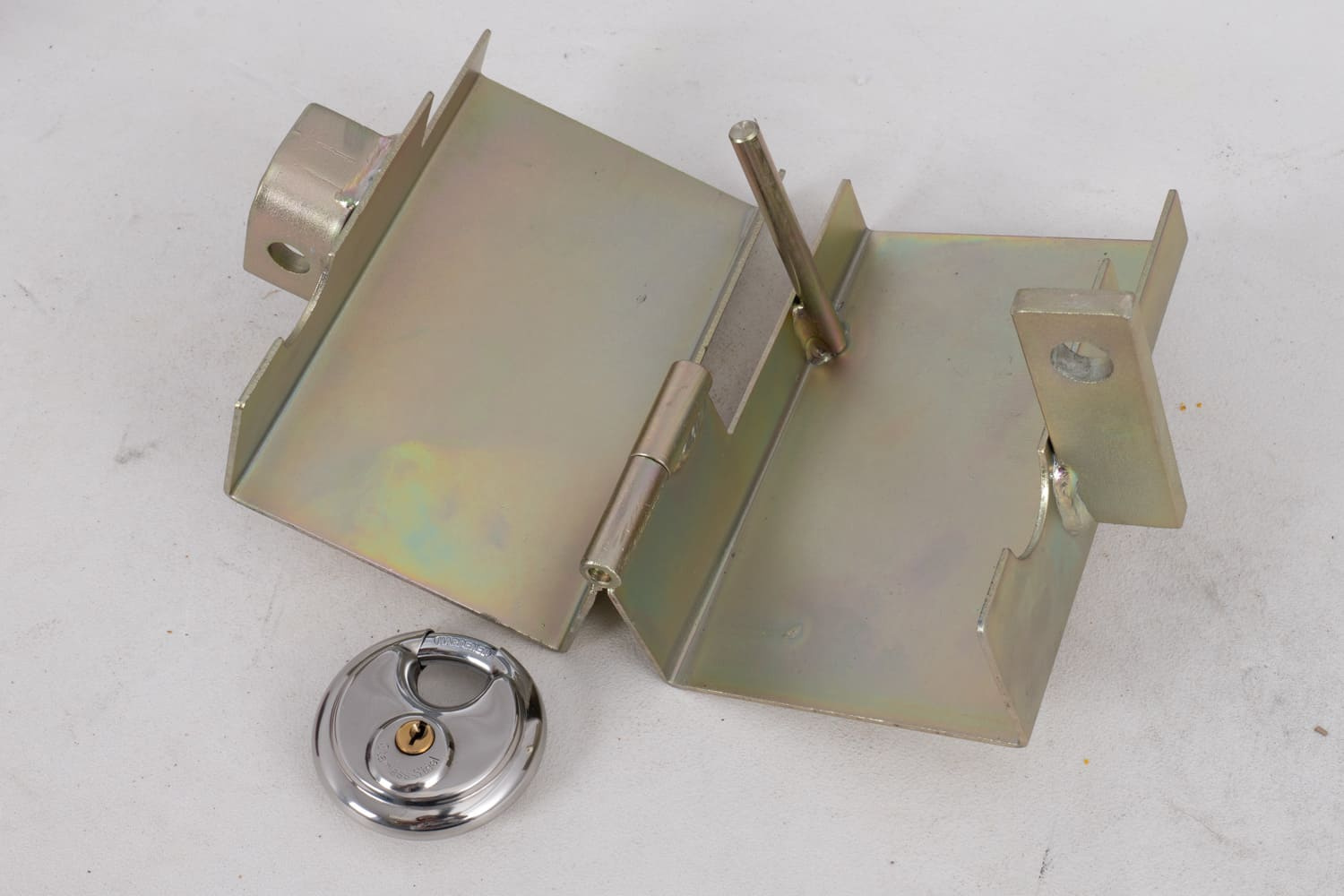 • OUTLET Dit slot is compatibel met de meeste lichte trekhaken. Het kan zowel op aangekoppelde als afgekoppelde aanhangers worden gemonteerd. Inclusief hangslot en twee sleutels.