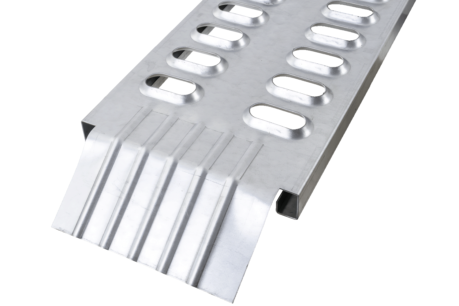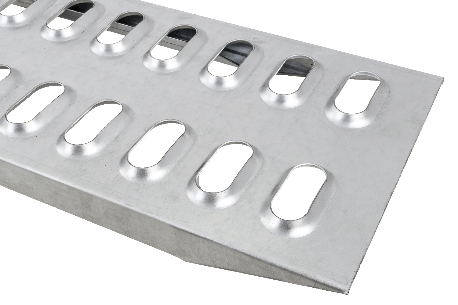 De CHORUS oprijplaat, 150 cm lang en 22 cm breed, is een duurzaam en functioneel hulpmiddel voor aanhangers en diepladers, ontworpen voor het laden van licht materieel zoals grasmaaiers, quads, scooters en karren. Het laadvermogen van één oprijplaat is 120 kg , terwijl twee oprijplaten samen een laadvermogen tot 240 kg kunnen bereiken. De oprijplaat is gemaakt van 1,5 mm dik gegalvaniseerd staal , wat zorgt voor een hoge corrosiebestendigheid en duurzaamheid onder zware omstandigheden. Het open, geperforeerde oppervlak van de oprijplaat zorgt voor goede grip en veilige bediening, zelfs onder moeilijke omstandigheden.