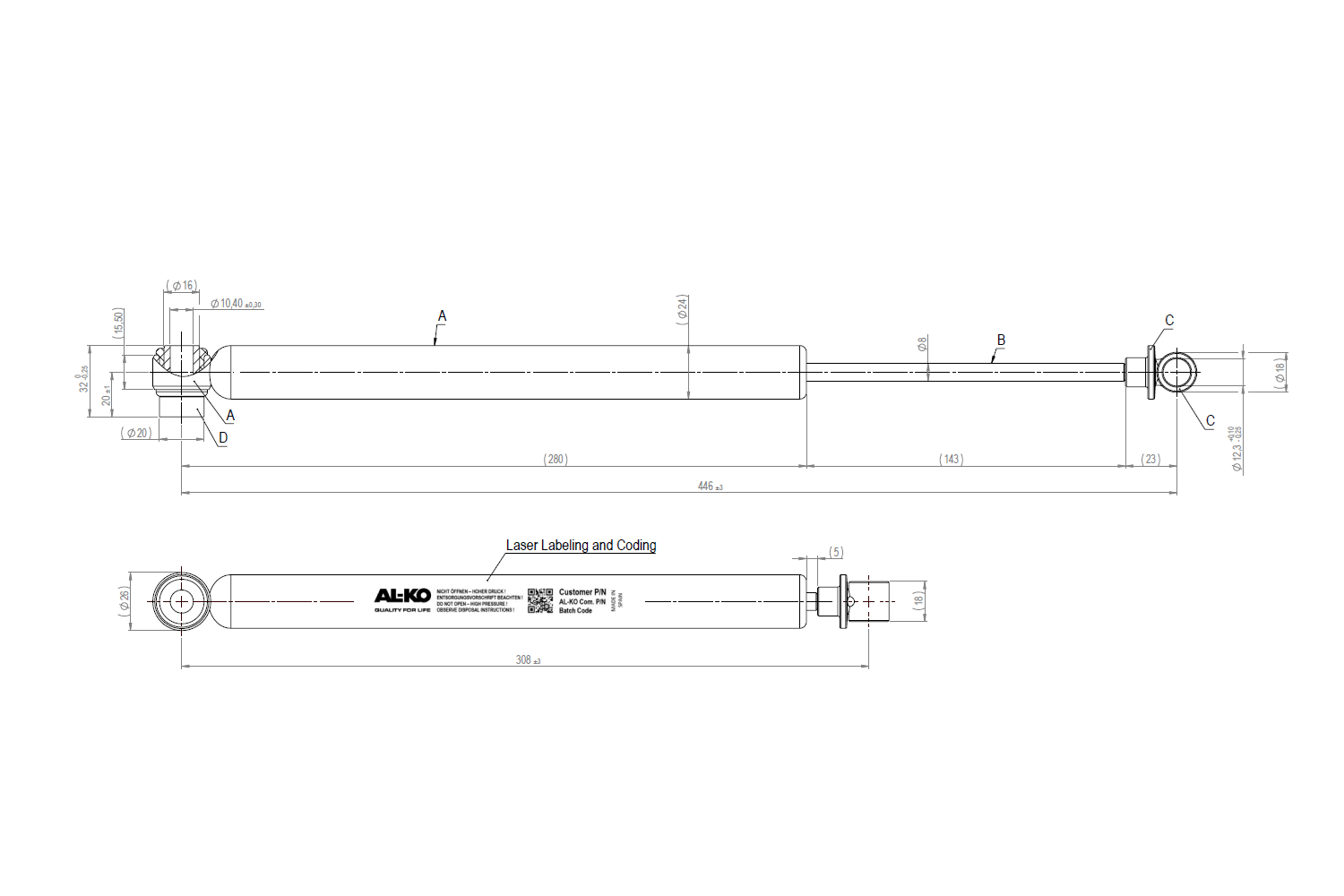 De AL-KO 60S schokdemper is een hoogwaardig onderdeel, speciaal ontworpen voor de AL-KO 60S/2 oplooprem, die wordt gebruikt op lichte aanhangers met een toegestaan totaalgewicht van 450 kg tot 750 kg . De functie ervan is het dempen van trillingen en schokken die ontstaan tijdens het remmen, wat het rijcomfort en de veiligheid aanzienlijk verbetert. Het robuuste ontwerp van de schokdemper zorgt voor een betrouwbare werking en een lange levensduur, zelfs bij frequent gebruik van de aanhanger.