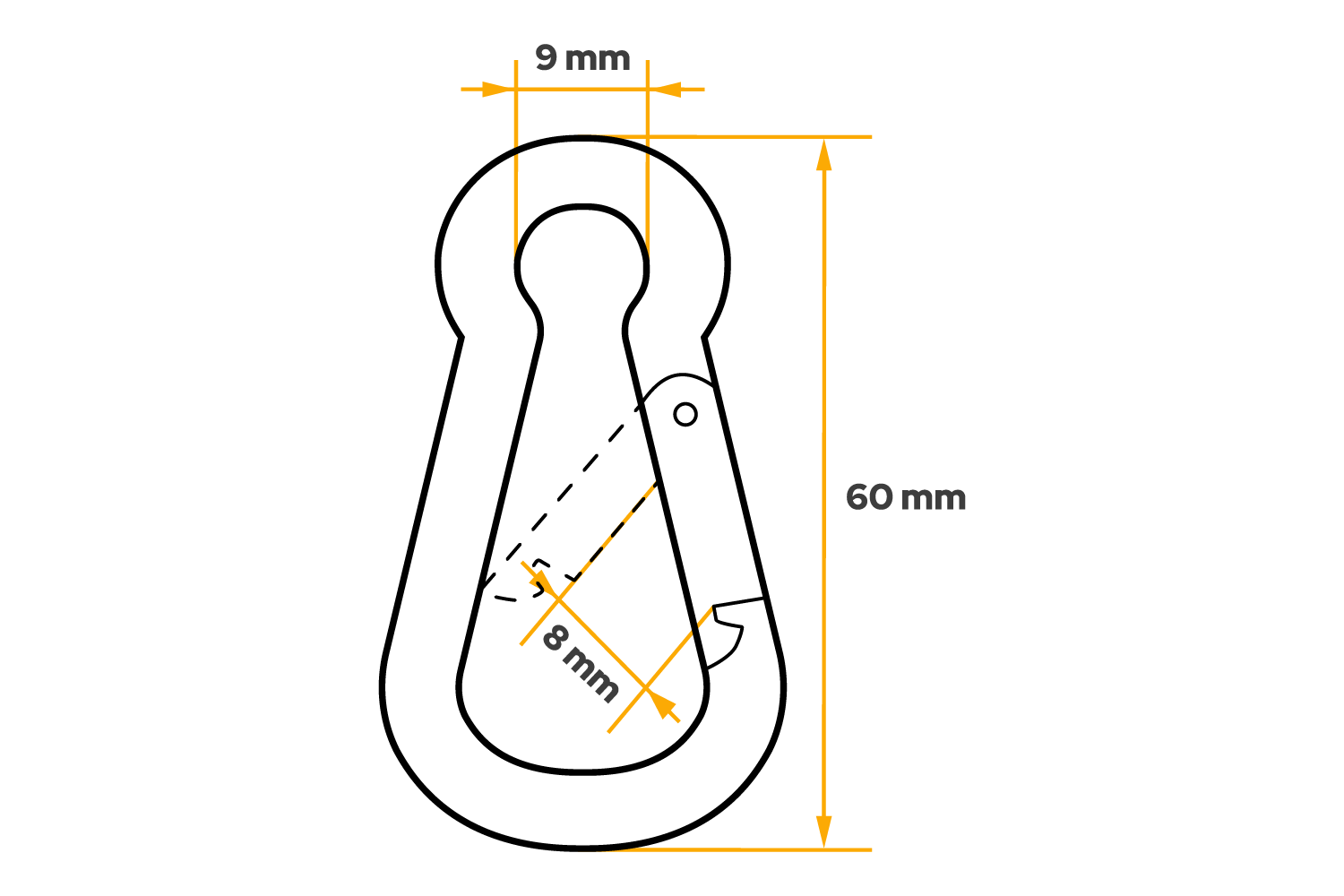 De karabijnhaak heeft een nominale belasting van 120 kg en een breeksterkte van 180 kg, waardoor hij geschikt is voor lichte tot middelzware sjor- en zekeringstoepassingen. Ideaal voor het vastzetten van ladingen, tuinieren, recreatief werk en eenvoudige sjorsystemen op aanhangwagens of transportplatforms.
