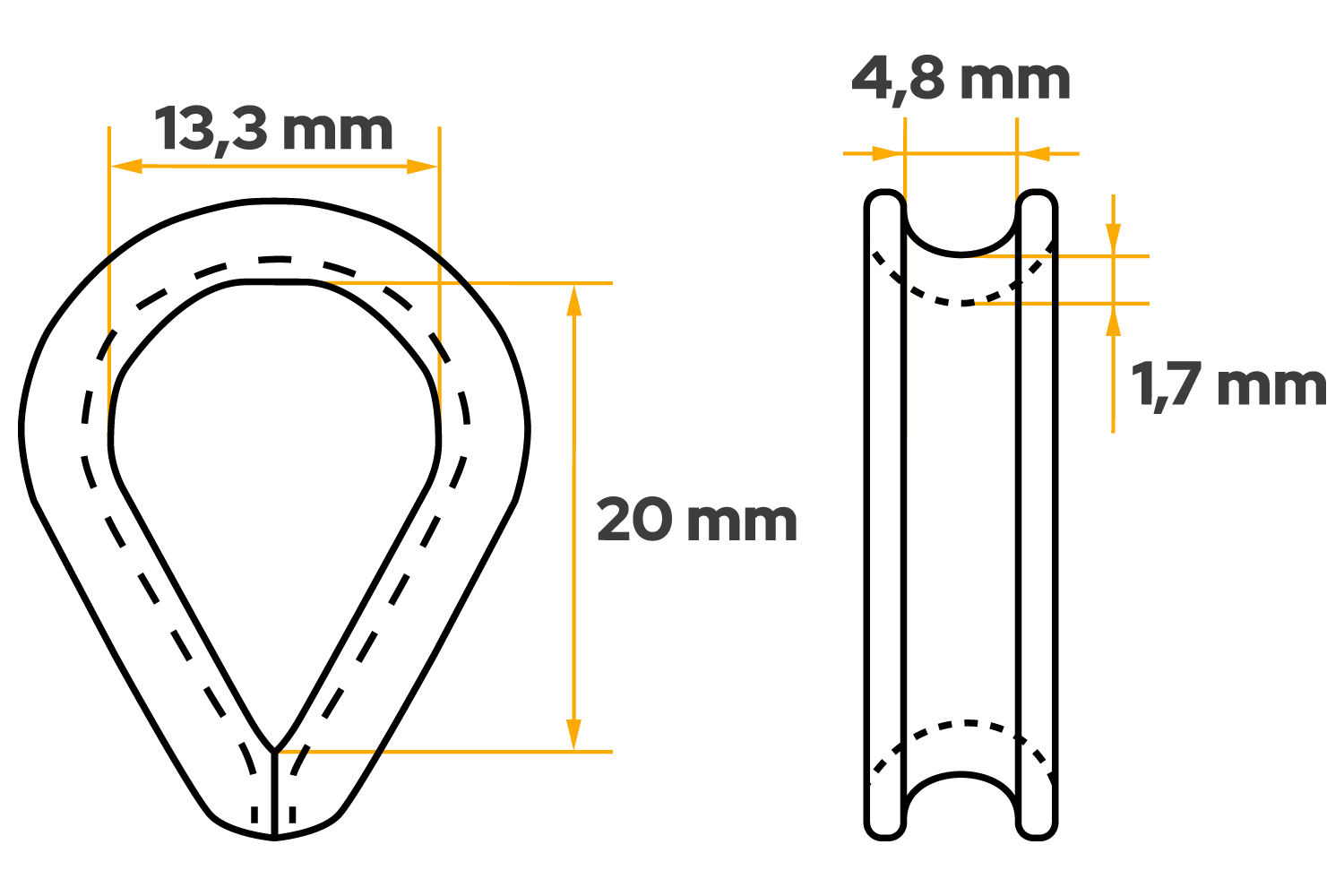 - De vingerhoed KU.4 van DROMET is geschikt voor touwen met een diameter van 4 mm. Hij wordt veel gebruikt in sleep-, hijs-, zeil- of transporttouwen. Hij heeft een beschermende functie en voorkomt slijtage en vervorming van het touw.