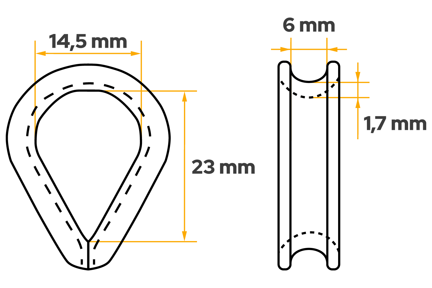 - De vingerhoed KU.5 van DROMET is geschikt voor touwen met een diameter van 5 mm. Hij wordt veel gebruikt in sleep-, hijs-, zeil- of transporttouwen. Hij heeft een beschermende functie en voorkomt slijtage en vervorming van het touw.