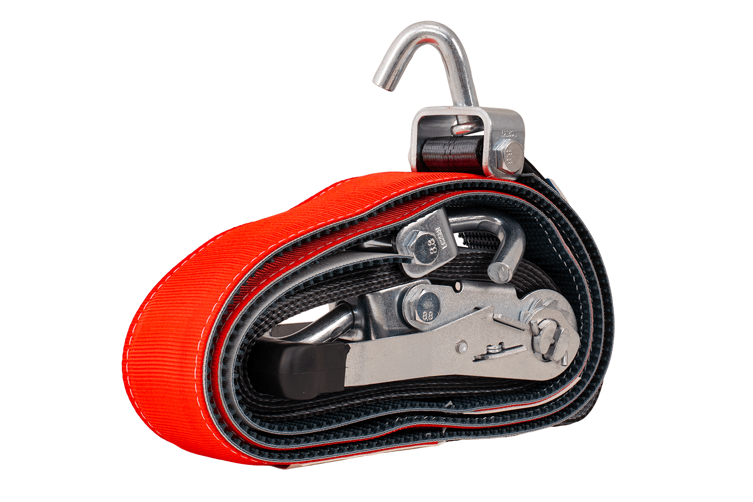 - HEFFA transportband, 5 m lang, 5 ton sterk, ontworpen voor het vastzetten van voertuigwielen door de band van een sleepwagen vast te sjorren. Voorzien van een 3-punts bevestigingssysteem dat zorgt voor een effectieve stabilisatie van de auto op het platfo