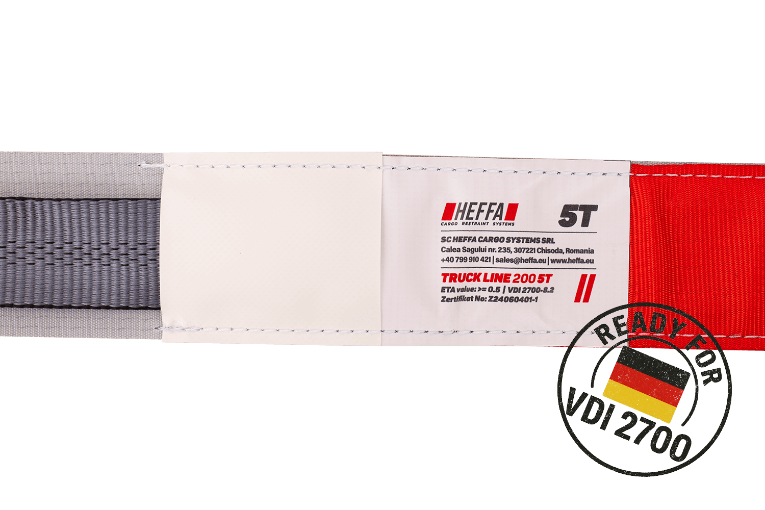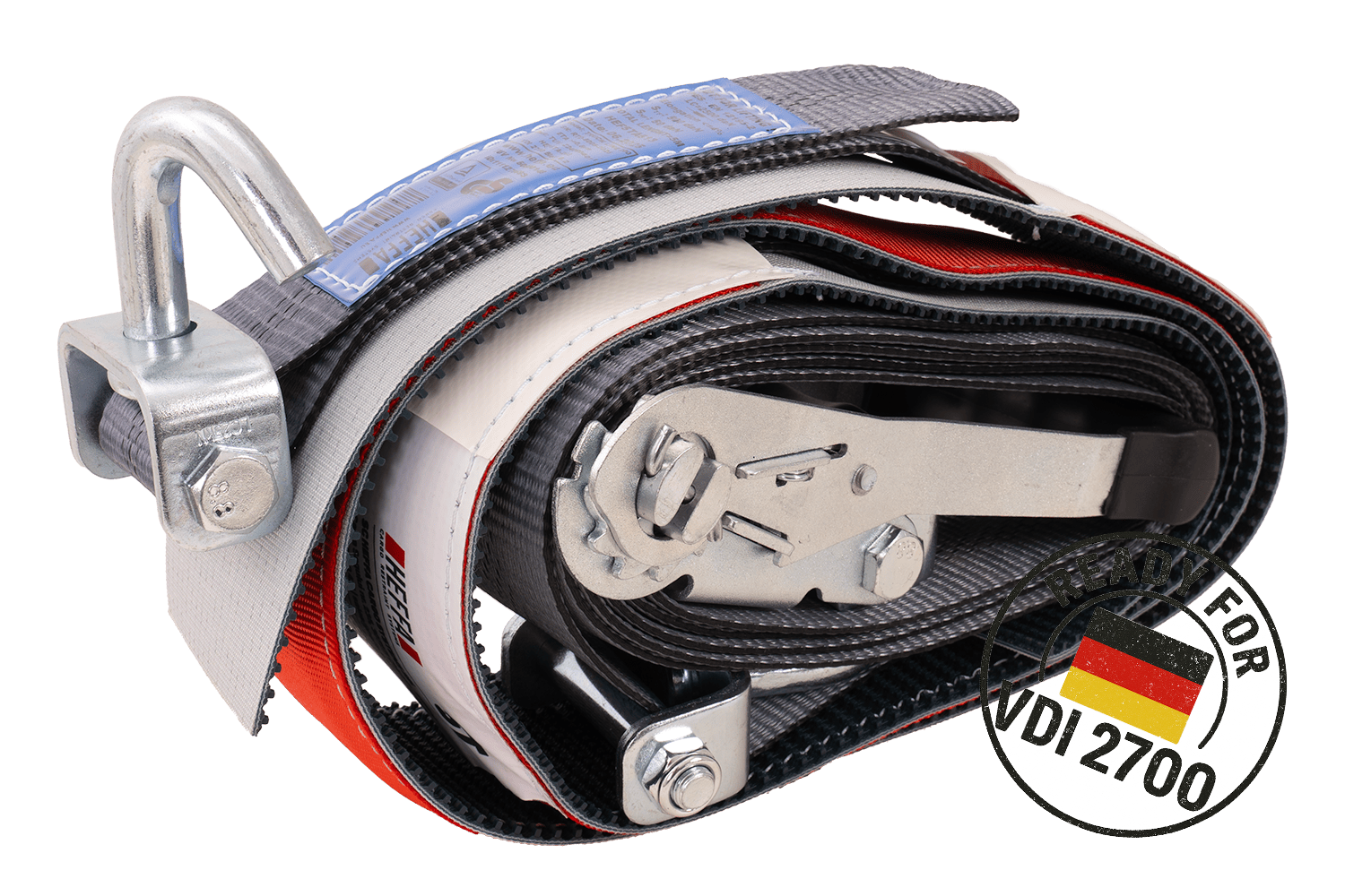 De VDI 2700 deel 8.1 richtlijn is een Duitse technische norm die gedetailleerde eisen specificeert voor het vastzetten van voertuigen die worden vervoerd op diepladers en aanhangwagens . Met betrekking tot spanbanden, met wielsjorren, specificeert deze richtlijn onder andere de methode van riemopstelling, het vereiste aantal sjorpunten (bijv. 3-puntssysteem), minimale spankrachtparameters en de principes van hun markering en technische goedkeuringen. Naleving van VDI 2700 8.1 betekent dat de banden voldoen aan strenge eisen op het gebied van veiligheid, betrouwbaarheid en effectiviteit van immobilisatie van het getransporteerde voertuig , wat cruciaal is voor professioneel transport van personenauto's en bestelwagens. Hierdoor kan de gebruiker er zeker van zijn dat het gebruikte sjorsysteem voldoet aan de huidige Europese en Duitse normen op het gebied van verkeersveiligheid.