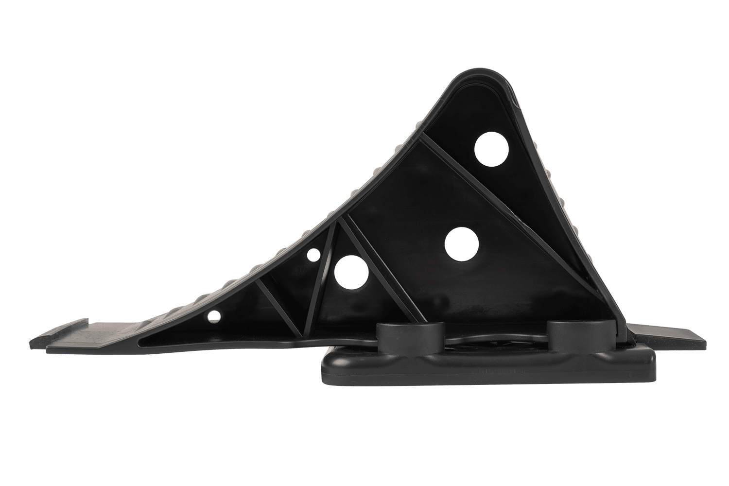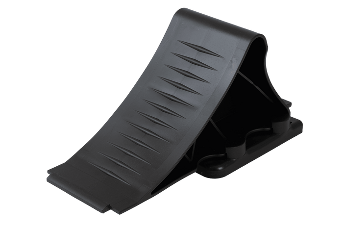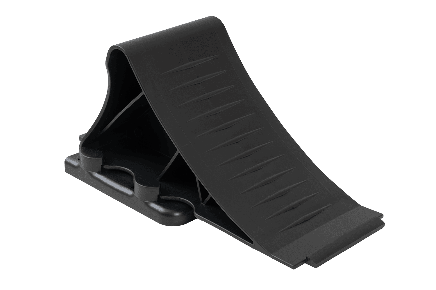 Gemaakt van hoogwaardig zwart polypropyleen , is de wig aanzienlijk lichter dan traditionele metalen wiggen , waardoor hij gemakkelijker te hanteren en te vervoeren is. Dankzij de robuuste constructie en het verfijnde profiel zorgt de wig voor betrouwbare immobilisatie van het voertuig, zelfs op moeilijk terrein. De ergonomische vorm en het compacte formaat maken hem gemakkelijk in gebruik en transport.