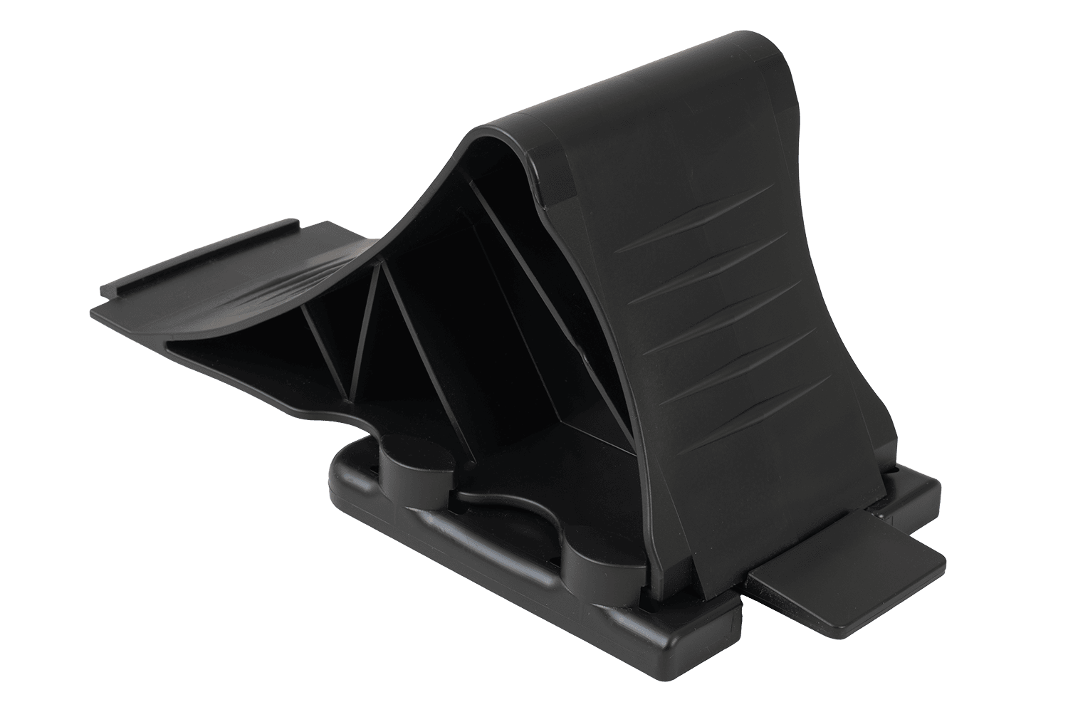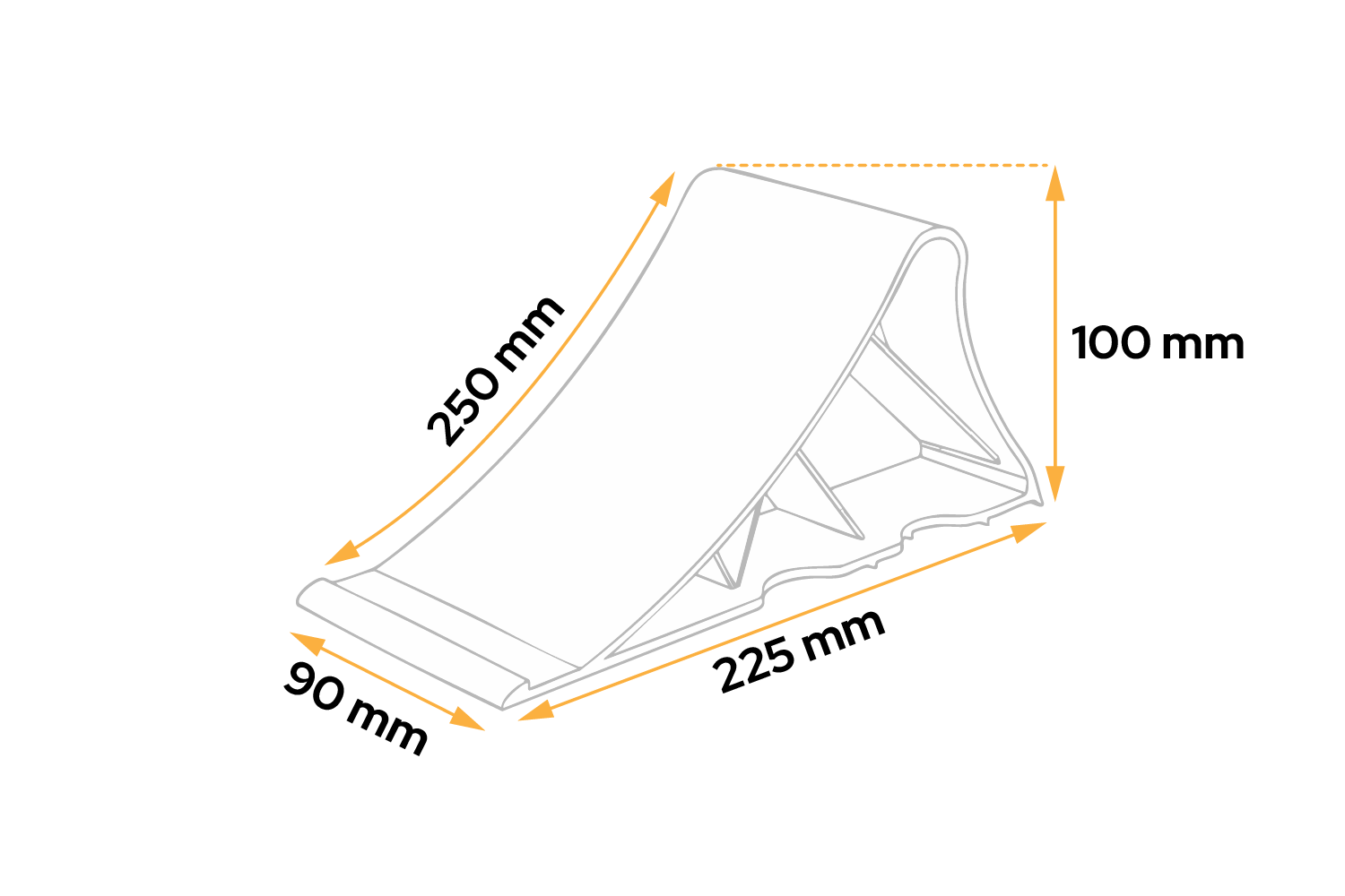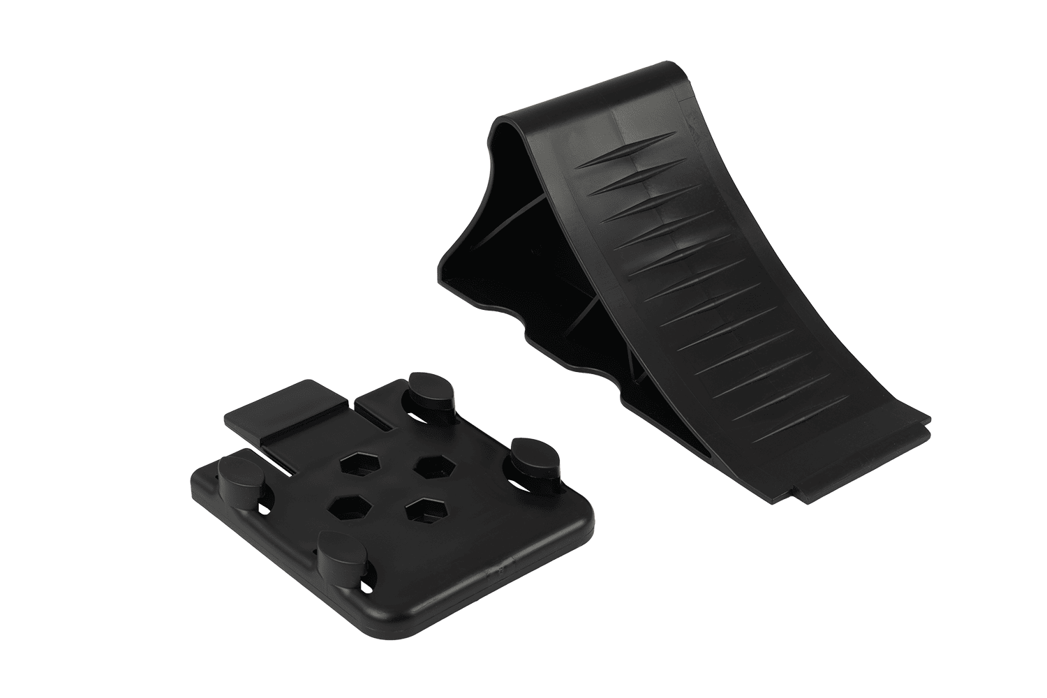 Gemaakt van hoogwaardig zwart polypropyleen , is de wig aanzienlijk lichter dan traditionele metalen wiggen , waardoor hij gemakkelijker te hanteren en te vervoeren is. Dankzij de robuuste constructie en het verfijnde profiel zorgt de wig voor betrouwbare immobilisatie van het voertuig, zelfs op moeilijk terrein. De ergonomische vorm en het compacte formaat maken hem gemakkelijk in gebruik en transport.