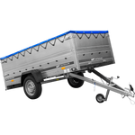 Autoaanhanger met stuuras 230 x 125 Garden Trailer 230 KIPP met gaaswanden en H-800 frame met blauwe hoes
