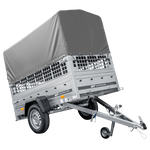 GARDEN TRAILER 200 KIPP autoaanhanger met steunwiel, mesh zijkanten en H-800 frame met grijze hoes