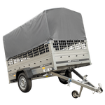 Enkelassige aanhangwagen 264x125 UNITRAILER GARDEN 264 KIPP met gaaswanden en grijs dekzeil
