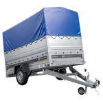 Lichte aanhanger op veren 264x125 UNITRAILER FORCE 264/R KIPP met BIS-zijwanden, H-800 frame en blauwe afdekking
