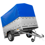 Enkelassige aanhanger 200x125 UNITRAILER GARDEN 201 KIPP met BIS-zijwanden, H-800 frame en blauwe afdekking